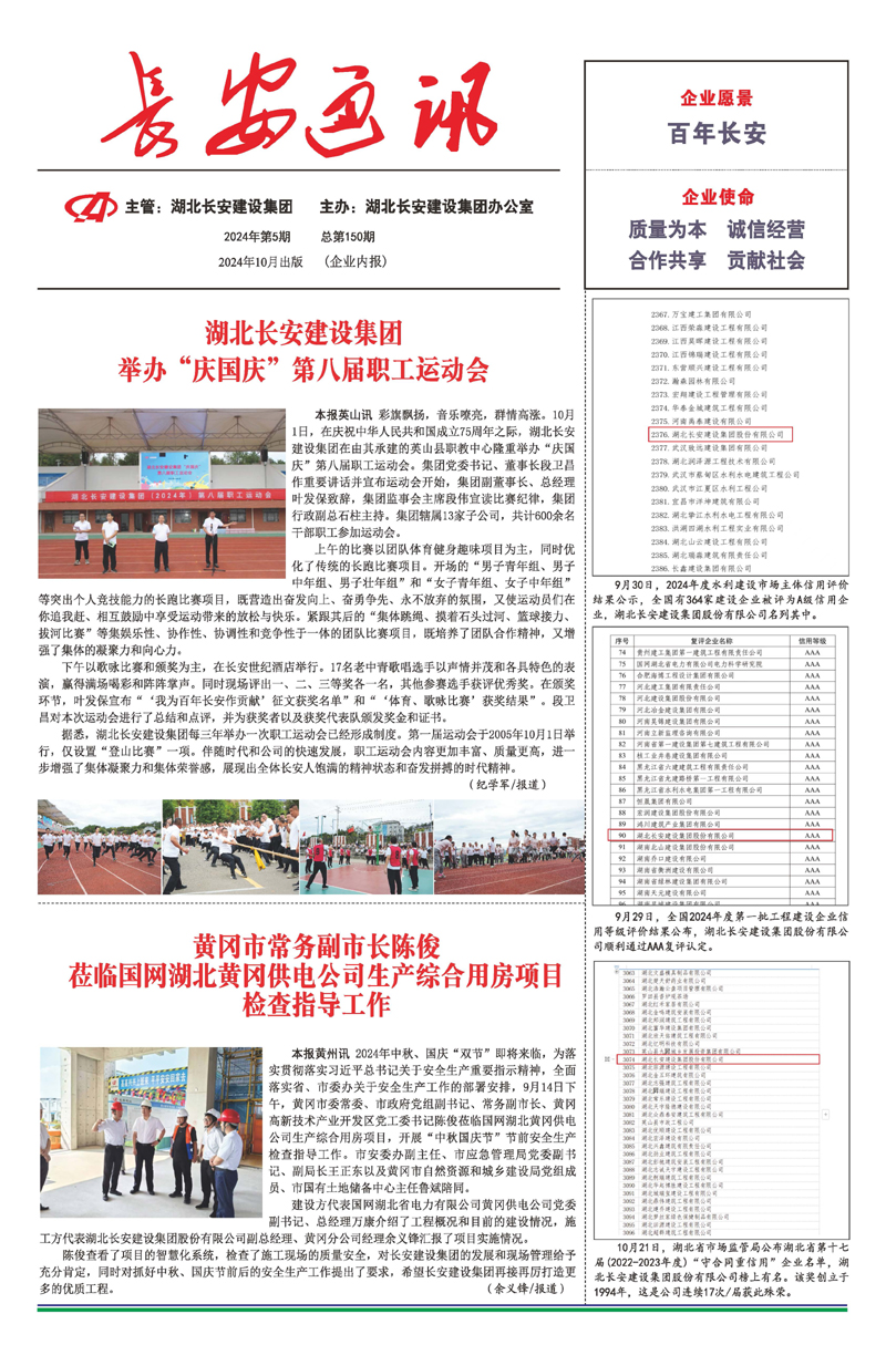 • 2025-09-27 湖北長安建設集團股份有限公司 榮獲2025湖北民營企業100強稱號,位列第35名